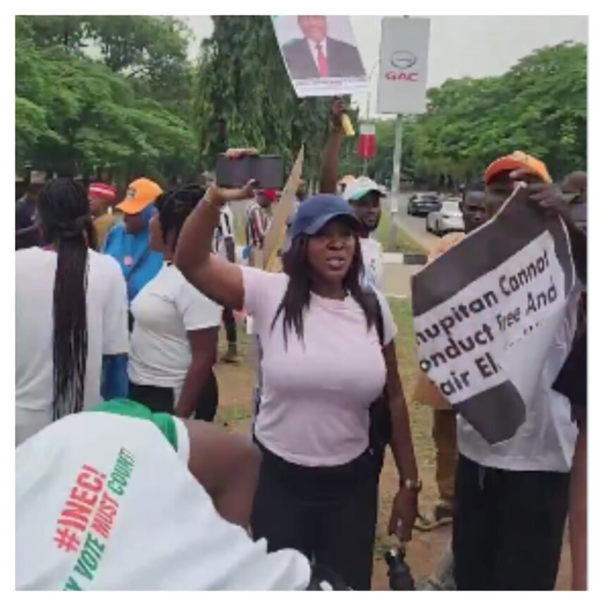 Taiwo POPOOLA Prominent African Democratic Congress, ADC, leaders, including Atiku Abubakar, Peter Obi, Rabiu Kwankwaso, Rauf Aregbesola, Rotimi Amaechi and Aminu Tambuwal, were on Wednesday seen holding the banner of the party while leading the ongoing “SAVE OUR DEMOCRACY” protest in Abuja. The protest is against INEC’s decision to delist the party’s leadership headed by David Mark. The demonstrators sang…